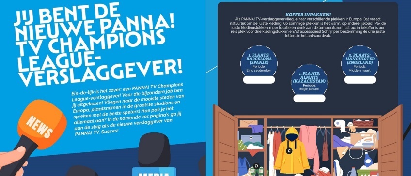 Dan kun je ook mee bepalen hoe de nieuwe Champions League-hymne moet klinken. Kun je de PANNA!-fotograaf helpen in zijn zoektocht naar de ontbrekende Ajax-speler. En kun je aangeven welke twee afbeeldingen van Kylian Mbappé precies hetzelfde zijn. Kun je berekenen hoeveel miljoenen PSV verdient aan de deelname aan de Champions League. En kun je straks met je vriendjes en/of vriendinnetjes het kaartspel G.E.I.T. spelen.