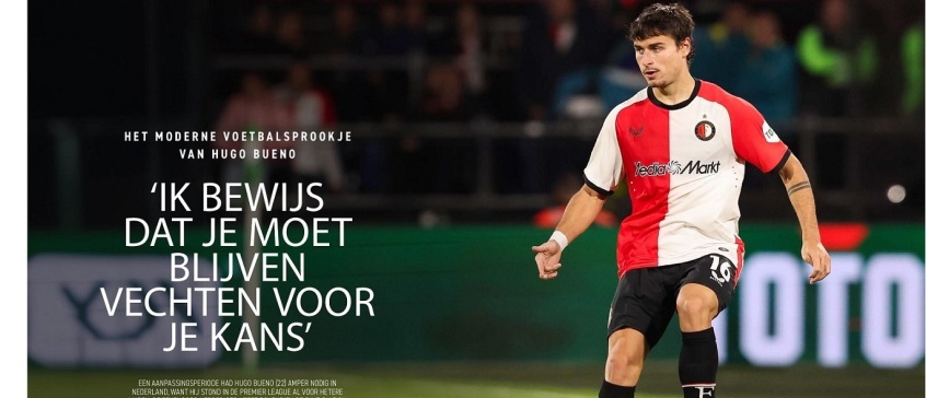 Een aanpassingsperiode had Hugo Bueno (22) amper nodig in Nederland, want hij stond in de Premier League al voor hetere vuren. De Feyenoord-verdediger heeft bovendien de gave om zich snel aan te passen. Niet in de laatste plaats omdat hij weet dat niets vanzelfsprekend is in de voetballerij. Lange tijd werd hij niet opgemerkt, maar een toevallig bezoek van een scout veranderde alles. "Ik heb altijd geloofd dat mijn kans zou komen. Mijn carrière bewijst dat je ervoor moet blijven vechten."