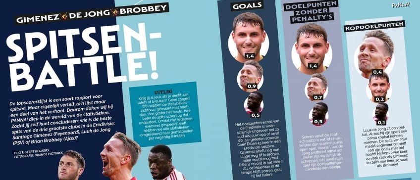 De topscorerslijst is een soort rapport voor spitsen. Maar eigenlijk vertelt zo'n lijst maar een deel van het verhaal. Daarom doken wij bij PANNA! diep in de wereld van de statistieken. Zodat jij zelf kunt concluderen: wie is de beste spits van de drie grootste clubs in de Eredivisie: Santiago Gimenez (Feyenoord), Luuk de Jong (PSV) of Brian Brobbey (Ajax)?